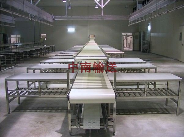 分割輸送機(jī)又稱不銹鋼尼龍輸送線,是分割肉流水線生產(chǎn)的主要設(shè)備之一。適用于牲畜胴體劈半、預(yù)冷、排酸后的剔骨、分割,該機(jī)的機(jī)架體全部采用不銹鋼材料。輸送帶為無毒尼龍輸送帶,為使經(jīng)久耐用,采用了無接頭的特制方式,使該機(jī)在使用中達(dá)到了無噪音,輸送帶無偏斜現(xiàn)象發(fā)生,機(jī)腳座采用尼龍活動腳,安裝調(diào)式輸簡便,機(jī)架選料為無縫不銹鋼方管,解決發(fā)積垢污染問題。使設(shè)備的衛(wèi)生條件達(dá)到了分割車間對外注冊的標(biāo)準(zhǔn),并使剔骨、分割肉生產(chǎn)輸送自動化。
